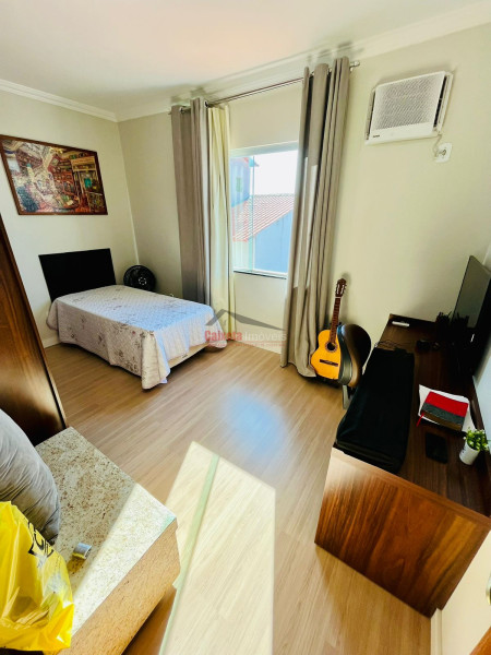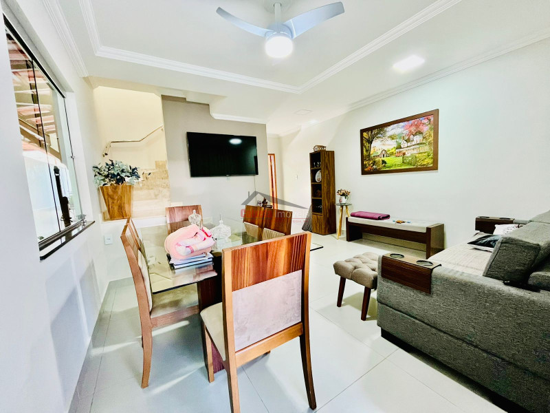 Casa à venda com 3 quartos (sendo 1 suíte), 3 banheiros, 144 m²; térreo com garagem para 2 carros grandes, área gourmet com churrasqueira, sala, lavabo, cozinha, lavanderia ampla e ducha; 1º andar com suíte, 2 quartos e banheiro social; diferenciais como rebaixamento de gesso, casa ampla e arejada, em ótimo estado de conservação; ficam no imóvel aparelhos de ar-condicionado e móveis planejados.